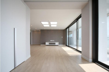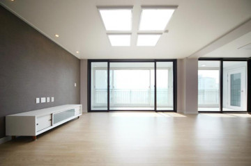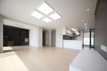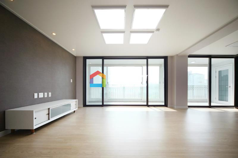 충격과 소음방지에 강한 강마루와 넓은 발코니가 거실의 넓은 평수를 보여줘요