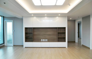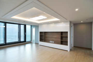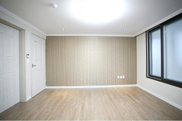 충격과 소음방지에 강한 강마루와 넓은 샷시, 우드 아트워가차분하고 안정적인 느낌을 주고 있어요.